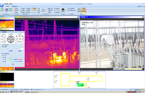 智能變電站紅外熱像系統是由前端網(wǎng)絡(luò )化云臺紅外熱像儀設備和后端操控診斷分析軟件組成,利用設置在變電站內若干個(gè)在線(xiàn)式紅外熱像儀,獲取監測范圍內設定目標的紅外熱圖像。后臺的紅外分析處理程序通過(guò)對拍攝的紅外熱圖像分析得到的溫度信息進(jìn)行綜合判斷,對高壓設備的熱故障進(jìn)行預診斷,溫度超出設定報警值,給出報警信號,引導現場(chǎng)操作人員對故障進(jìn)行進(jìn)一步排查,解決存在的問(wèn)題,避免故障發(fā)生。巡檢人員也可遠程操控現場(chǎng)在線(xiàn)熱像儀,進(jìn)行人工巡檢,精確定位分析。系統可對疑難紅外圖譜進(jìn)行分析診斷,生成診斷報告,指導現場(chǎng)檢修處理。