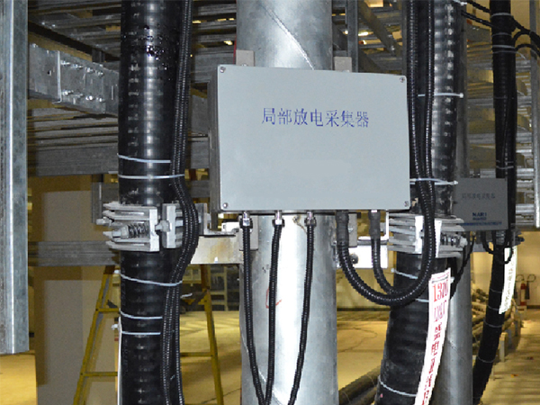 電纜局部放電在線(xiàn)監測裝置,通過(guò)安裝在電纜接頭接地線(xiàn)上的脈沖電流傳感器,來(lái)耦合電纜本體里的局部放電脈沖電流信號;耦合到的脈沖信號通過(guò)同軸電纜傳送至局部放電采集器,該采集器對模擬信號經(jīng)過(guò)放大、模擬數字轉換后變成數字信號再通過(guò)光纖傳送至變電站主控室的監測主機。