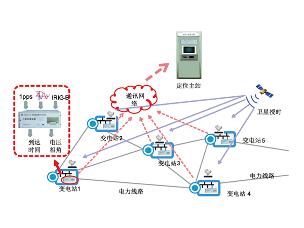 輸電網(wǎng)故障行波定位系統包含故障行波采集終端和行波定位主站兩部分。通過(guò)在輸電網(wǎng)各變電站選擇性安裝一臺故障行波采集終端,檢測容性設備接地線(xiàn)(如:CVT接地線(xiàn)、變壓器接地線(xiàn)、桿塔接地線(xiàn))的故障行波信號,記錄行波波頭到達各變電站的ns級高精度衛星同步時(shí)間。故障行波定位主站利用各變電站行波采集終端記錄的時(shí)間差,準確計算電網(wǎng)故障點(diǎn)位置,誤差小于100m。實(shí)現包括單相接地故障、相間短路故障、雷擊故障、絕緣子污閃等各種類(lèi)型故障的準確定位。